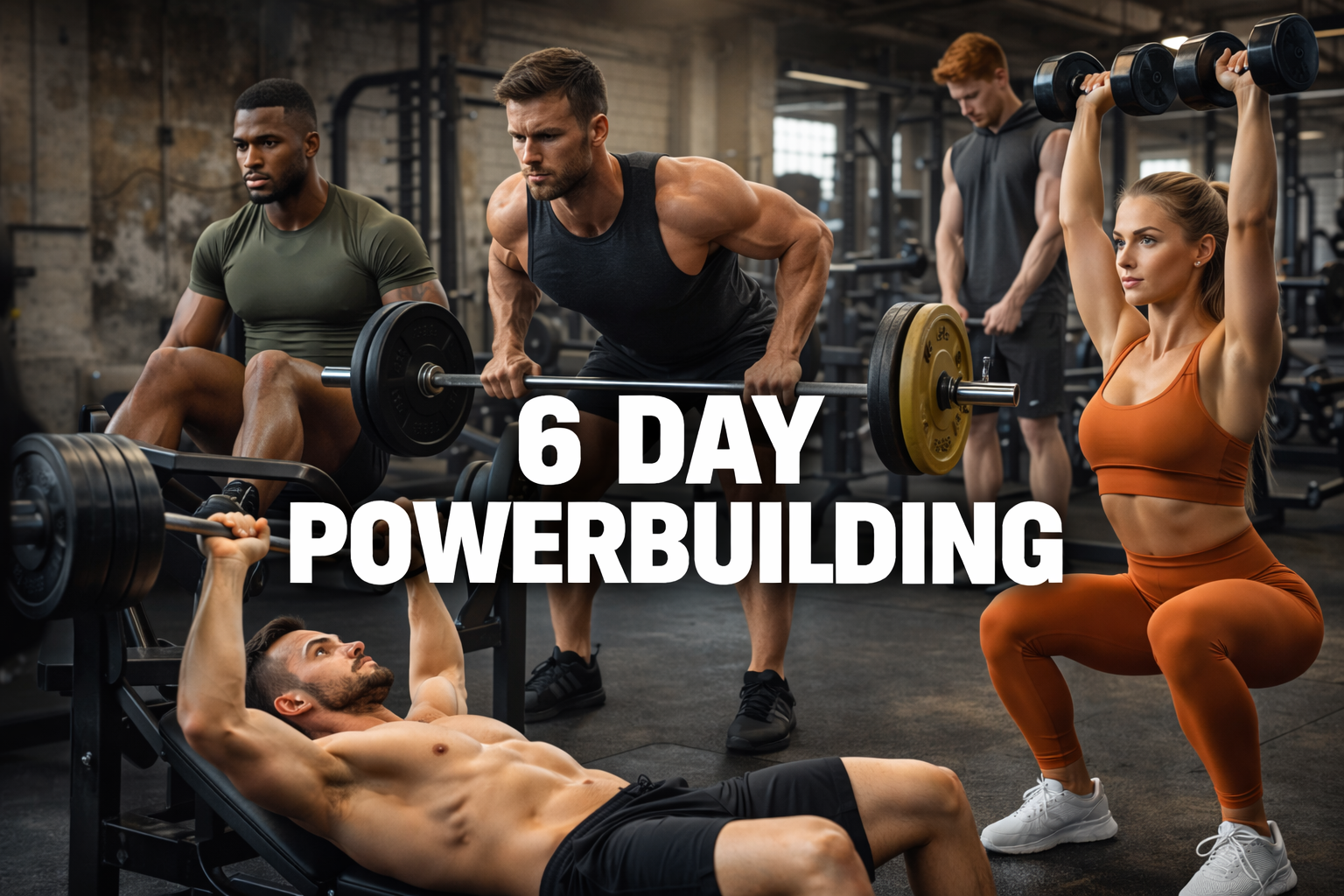 Push/Pull/Legs twee keer per week. Compoundoefeningen (bench, deadlift, squat) met een progressiesysteem van ±15 total reps verdeeld over 5 sets. Ideaal voor intermediates die kracht én spiermassa willen opbouwen.